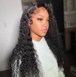 This item is a long curly human hair wig, pre-plucked natural hairline, baby hair premade, natural black hair color. Long curly wigs have 180% density and 250% density, as curly hair is a kind of big hair, 180% density is popular, but if you prefer big hair, 250% density would be your best choice.