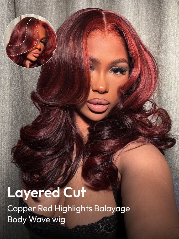 Asteria Hair New Arrival - Copper Red Highlight Ombre Human Hair Wig