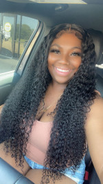 This item is a long curly human hair wig, pre-plucked natural hairline, baby hair premade, natural black hair color. Long curly wigs have 180% density and 250% density, as curly hair is a kind of big hair, 180% density is popular, but if you prefer big hair, 250% density would be your best choice.