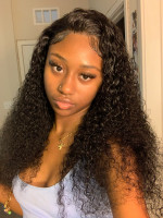 This item is a long curly human hair wig, pre-plucked natural hairline, baby hair premade, natural black hair color. Long curly wigs have 180% density and 250% density, as curly hair is a kind of big hair, 180% density is popular, but if you prefer big hair, 250% density would be your best choice.