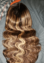 L******This wigs are exactly as described. The Brown highlights is so beautiful. You won’t regret purchasing this straight lace front wig highlights human hair it so silky and soft! I purchased this hair for my birthday and I absolutely love it.The Knots are perfect and the hairline is pre plucked. I’m 100 % satisfied with my 13x4 lace wig I definitely will order again