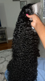 This item is a long curly human hair wig, pre-plucked natural hairline, baby hair premade, natural black hair color. Long curly wigs have 180% density and 250% density, as curly hair is a kind of big hair, 180% density is popular, but if you prefer big hair, 250% density would be your best choice.